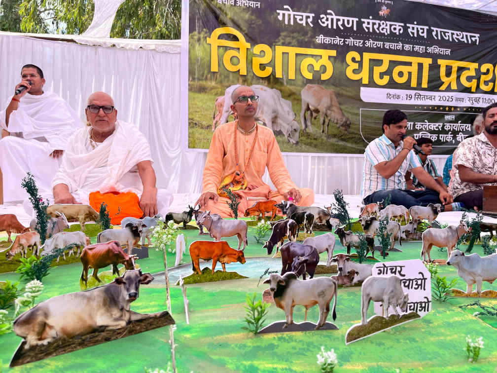 *इस्कॉन बीकानेर के भक्तों ने गोचर ओरण संरक्ष्क संघ गो माता की रक्षा के लिए विशाल धरना प्रदर्शन में रहे उपस्थित*