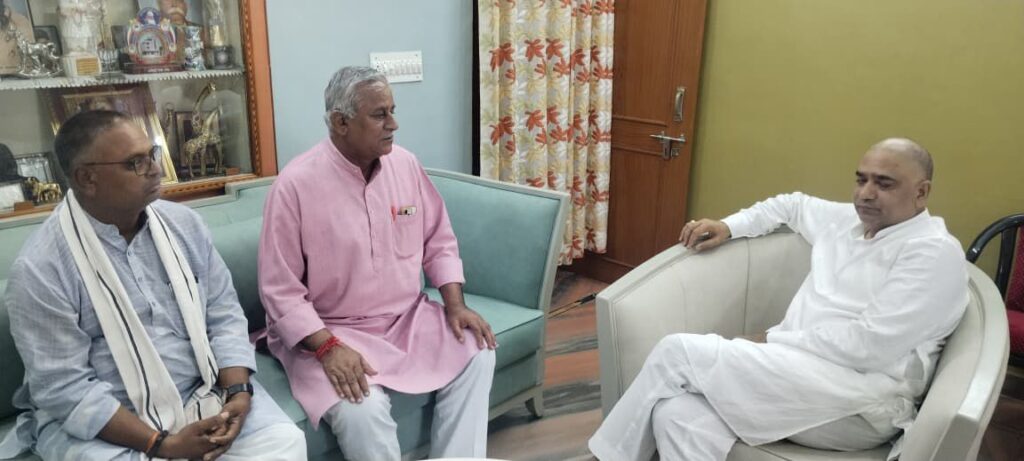 *बीकानेर /अजमेर, 7 सितंबर 2025:* बीकानेर (पश्चिम) विधायक श्री जेठानंद व्यास ने रविवार को राजस्थान सरकार के जल संसाधन मंत्री श्री सुरेश रावत के पिता के निधन पर उनके निवास स्थान मोहाली, अजमेर पहुंचकर शोक संवेदना व्यक्त की। इस दौरान उनके साथ भंवर पुरोहित भी मौजूद रहे। विधायक व्यास ने दिवंगत आत्मा की शांति के […]
