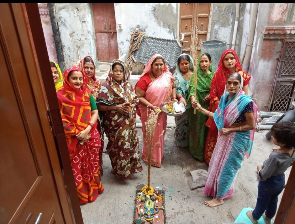 आज बीकानेर मोहता चौक करनानी गली में बद्री दास जी जोशी (बलि महाराज)परिवार की सभी औरतों ने गोवर्धन महाराज की पूजा बड़ी धूमधाम से की जिसमे पहले गोबर से गोवर्धन महाराज की प्रतिमा बनाई फिर उस प्रतिमा को फूलो से रंगों और गहनों से सजा कर सबने गोवर्धन जी की पूजा अर्चना करके परिवार में। […]