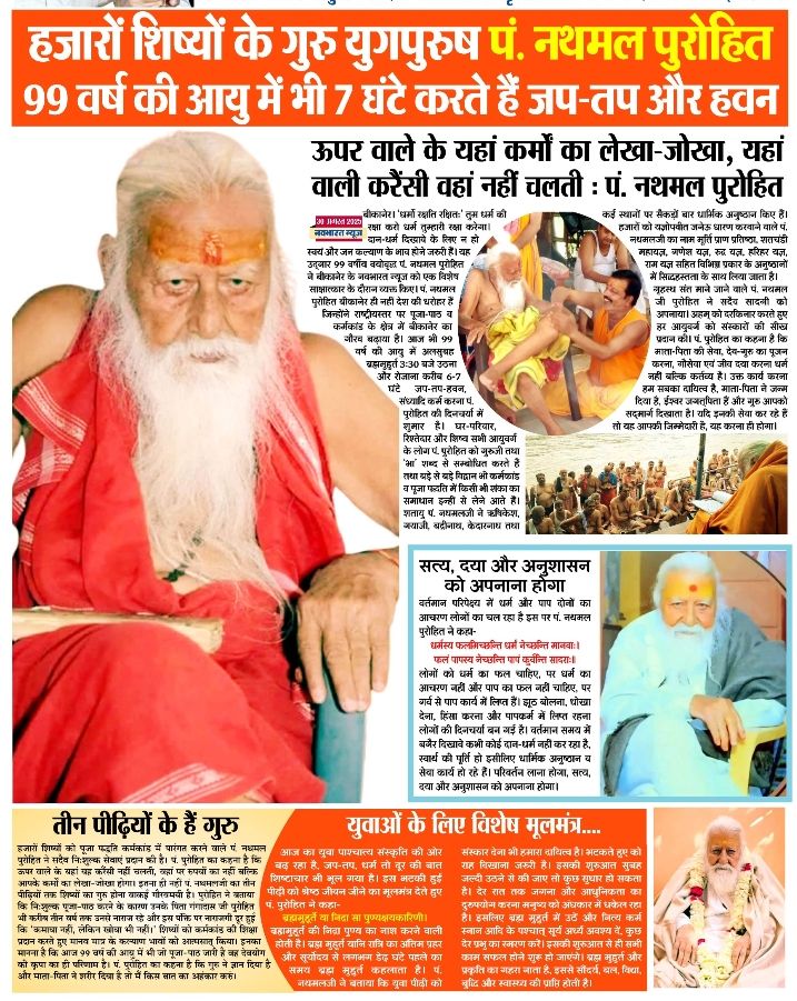 धर्मनगरी बीकानेर (राजस्थान) के गौरव, कर्मकांड भास्कर पंडित श्री नथमल पुरोहित जी का जीवन का परिचय