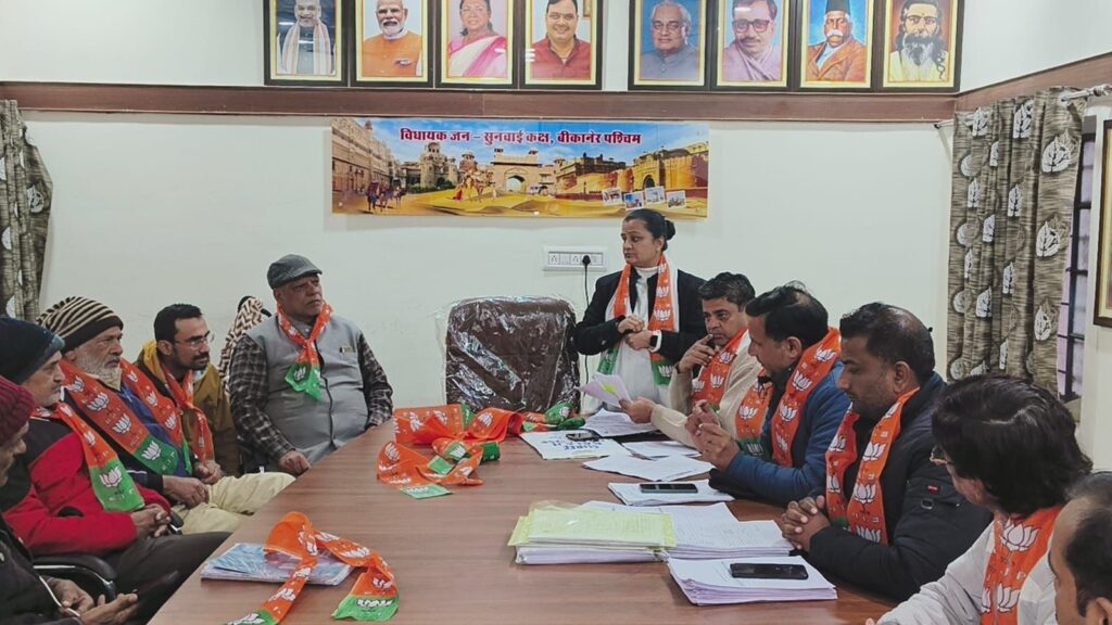 “पुराना शहर मंडल की संगठनात्मक सशक्तिकरण कार्यशाला का आयोजन” आज 11 जनवरी 2026 को भारतीय जनता पार्टी पुराना शहर मंडल की संगठनात्मक सशक्तिकरण कार्यशाला मण्डल अध्यक्ष आशा आचार्य की अध्यक्षता में बीकानेर पश्चिम विधायक सेवा केन्द्र पर सफलतापूर्वक सम्पन्न हुई। कार्यशाला में मुख्य अतिथि जिला उपाध्यक्ष श्री मोतीलाल जी हर्ष का मार्गदर्शन प्राप्त हुआ। बैठक […]