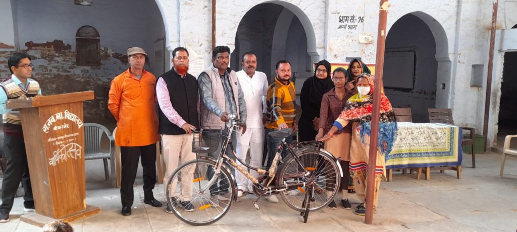आज दिनांक 11 दिसंबर 2021 को विद्यालय में कक्षा 9 व 10 की छात्राओं को राज्य सरकार की योजना अंतर्गत अनुसार निशुल्क साइकिल वितरण कार्यक्रम का आयोजन किया गया कार्यक्रम के मुख्य अतिथि श्रीमान अनिल कुमार सोनी (झूमर सा) वरिष्ठ उपाध्यक्ष बीकानेर व्यापार उद्योग मंडल श्री रमजान कच्छावा पार्षद श्रीमती महनाज बानो पार्षद श्री ताहिर […]