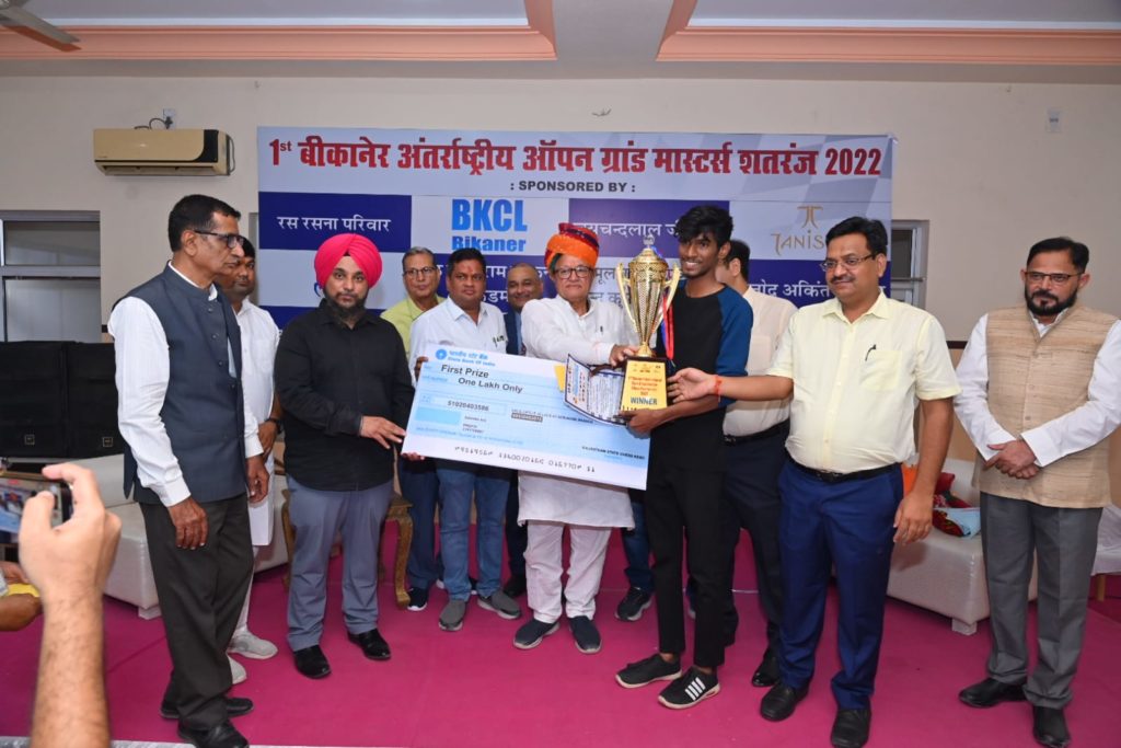 बीकानेर में प्रथम अंतरराष्ट्रीय ओपन ग्रांड मास्टर्स प्रतियोगिता का समारोहपूर्वक हुआ समापनजो हारता है वह एक दिन बड़ी जीत प्राप्त करता है : महावीर रांकातमिलनाडू के दो भाई बने विजेता-उपविजेता, दिनेश कुमार ने जीता एक लाख का ईनामबीकानेर। हमारी विल पावर मजबूत है तो हम किसी भी चुनौती को स्वीकार कर सकते हैं। शतरंज एक […]