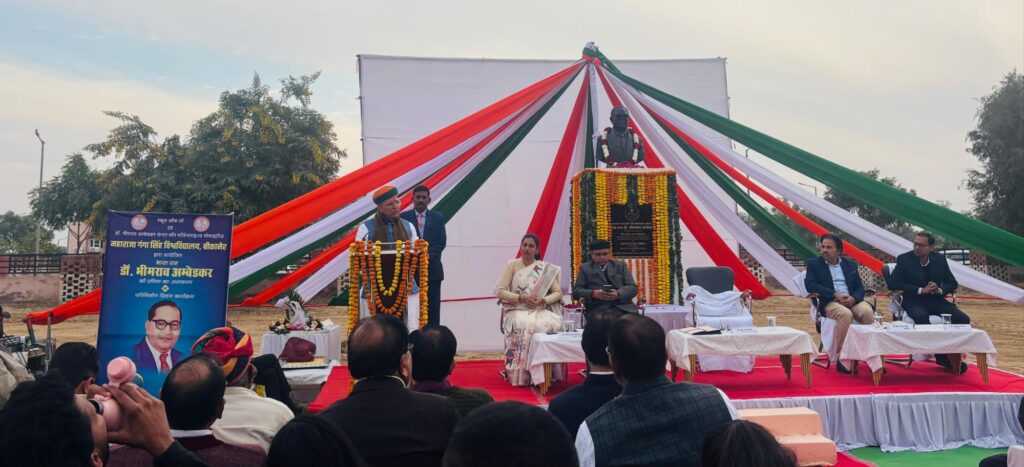 एमजीएस विवि में डॉ. भीमराव अंबेडकर की प्रतिमा का केंद्रीय कानून मंत्री श्री अर्जुन राम मेघवाल ने किया अनावरण