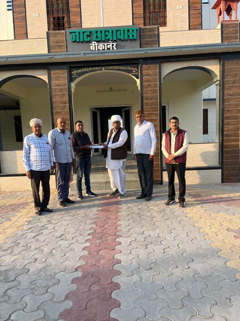 जाट छात्रावास सागर रोड़ बीकानेर में नए कमरे के निर्माण हेतु सांगवा परिवार ने दिया आर्थिक सहयोग