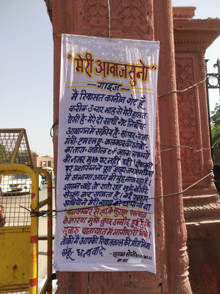 पब्लिक पार्क गेट की दुर्दशा पर प्रशासन का ध्यान आकर्षित करने का प्रयास पब्लिक पार्क में प्रवेश के लिए रियासतकालीन तीन दरवाजों में एक दरवाजा जर्जर होने की दशा में बेरिकेट्स लगाकर अरसे बन्द पड़ा है। जिला प्रशासन का मुख्यालय होने के बावजूद इस की सुध नहीं ली गई। आमजन को रोज जाम से गुजरना […]