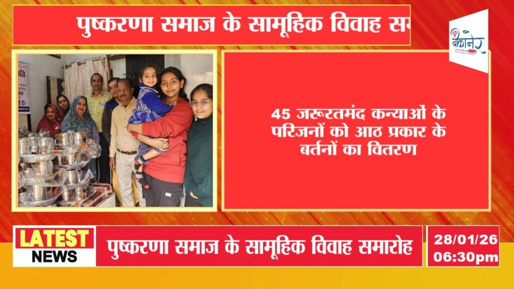 45 जरूरतमंद कन्याओं के परिजनों को आठ प्रकार के बर्तनों का वितरण