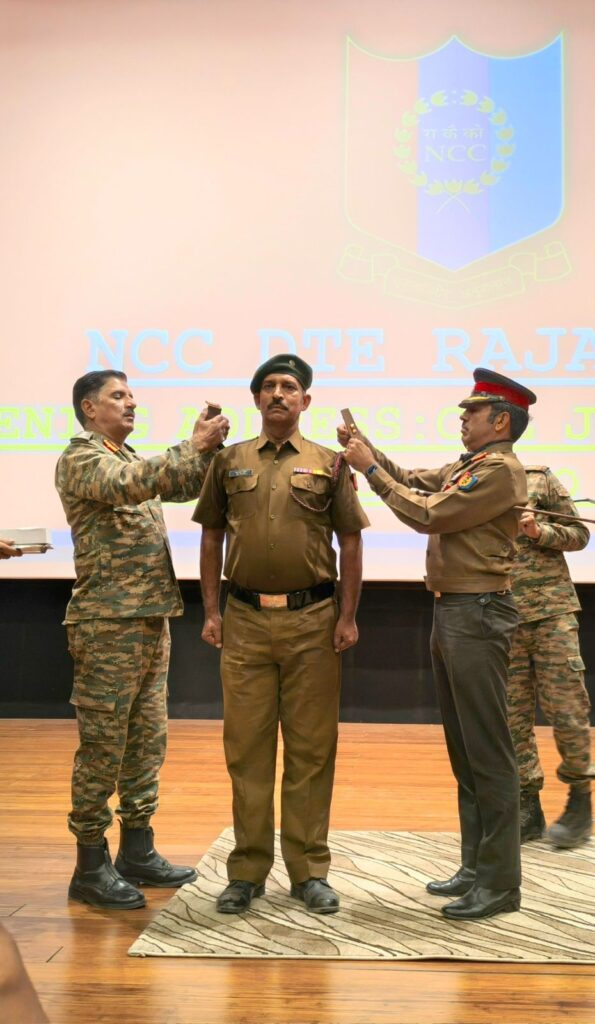 NCC की 7 वी राज बटालियन बीकानेर द्वारा इसी माह जैसलमेर सैन्य क्षेत्र में आयोजित विशेष राष्ट्रीय एकीकृत कैंप (SNIC) के दौरान 5-दिसम्बर को आयोजित पाइपिंग सेरेमनी में राजकीय पॉलीटेक्निक महाविद्यालय बीकानेर के असोसिएट एनसीसी अधिकारी कैप्टन एस एल राठी को अशोक चिह्न लगाकर मेजर रैंक से अलंकृत किया गया। समारोह में एनसीसी जोधपुर के […]