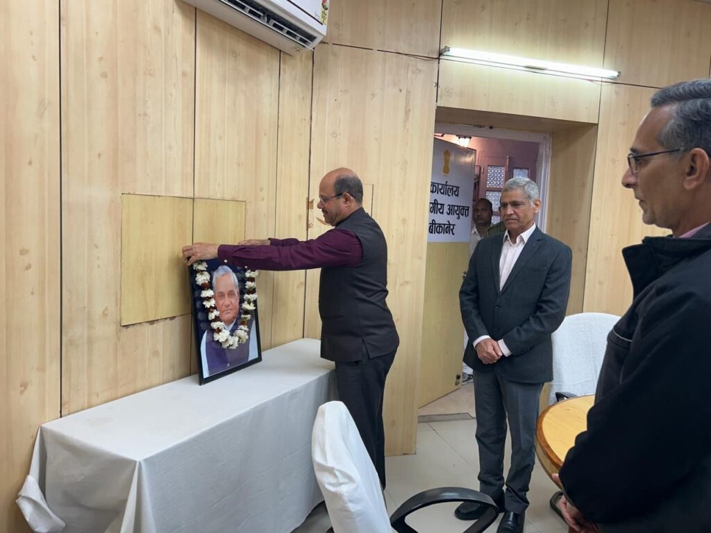 पूर्व प्रधानमंत्री स्व. श्री अटल बिहारी वाजपेयी के जन्म जयंती के अवसर पर गुरुवार को संभागीय आयुक्त कार्यालय में सुशासन की शपथ ली गई। इस दौरान अधिकारियों ने स्व. श्री बाजपेयी के चित्र पर पुष्पांजलि अर्पित की।संभागीय आयुक्त श्री विश्राम मीणा ने कहा कि ‘सुशासन दिवस’ प्रत्येक कार्मिक को उनके कर्त्तव्यों की पालना की सीख […]