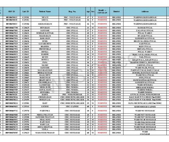 बीकानेर में आज 282 पॉजिटिव देखें पूरी लिस्ट