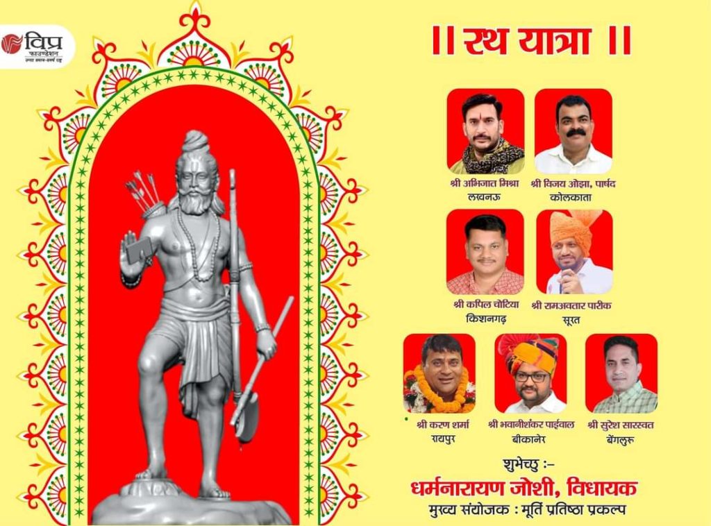 भाजयुमो नेता भवानी पाईवाल को ब्राह्मण समाज के वैश्विक संगठन विप्र फाउंडेशन में राष्ट्रीय कार्यसमिति में शामिल किया। पाईवाल लम्बे समय सक्रिय राजनीति में है। अरूणाचल प्रदेश स्थित परशुराम कुंड तीर्थोन्नयन में विप्र फाउंडेशन की ओर से 51′ पंचधातु की भगवान परशुराम की मूर्ति स्थापना के पावन प्रकल्प से देशवासियों को अवगत करवाने और उन्हें […]