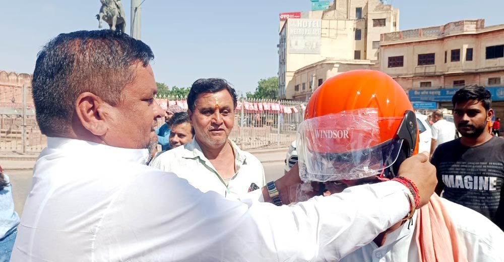 महावीर रांका ने वितरित किए 200 हेलमेट, कहा – हेलमेट पहनेंगे तो जीवन रहेगा सुरक्षित