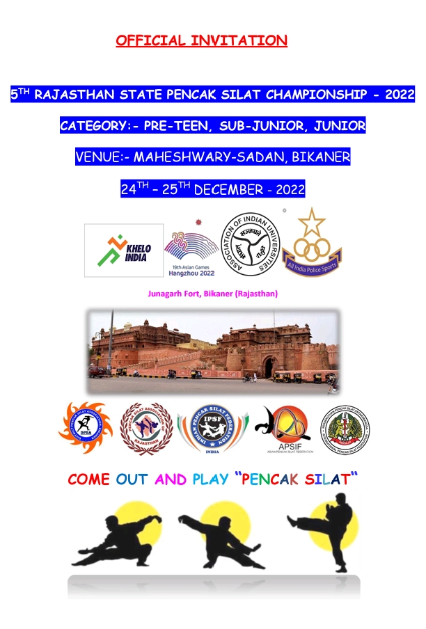 राजस्थान स्टेट पेनचाक सिलाट चैम्पियनशिप 24 दिसंबर से बीकानेर में…
