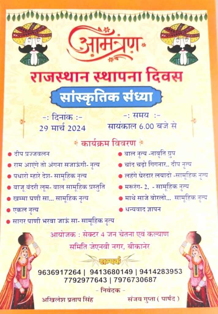 *राजस्थान स्थापना दिवस की पूर्व संध्या पर सांस्कृतिक कार्यक्रम का आयोजन*