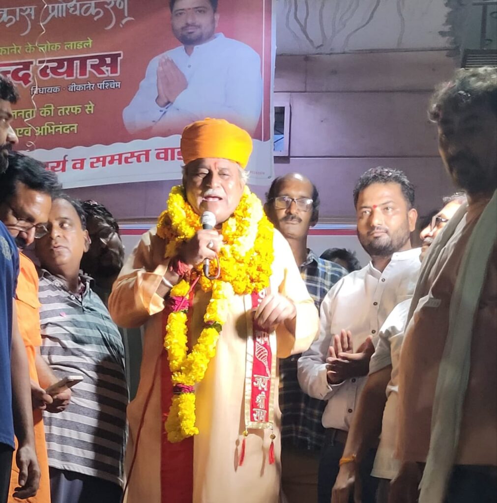 देर रात आचार्यों के चौक में हुआ विधायक व्यास का अभिनन्दन
