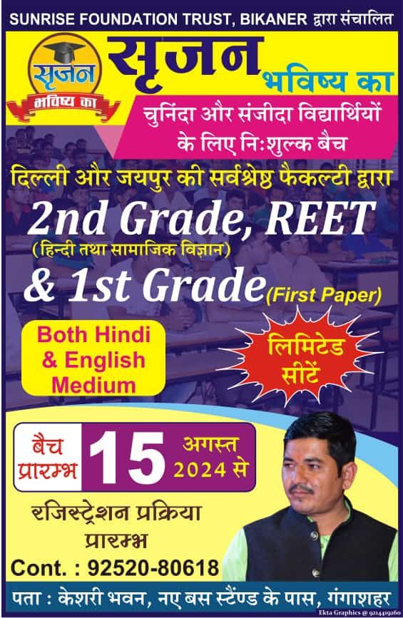 SUNRISE FOUNDATION TRUST, BIKANER में 15 अगस्त से शुरू होंगे शिक्षक भर्ती के निशुल्क बैच