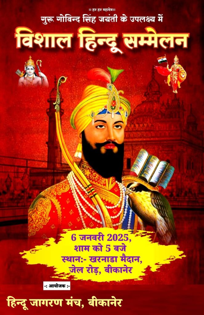 गुरू गोविन्द सिंह जयन्ति पर विराट हिन्दू सम्मेलन कल -हिन्दु जागरण मंच