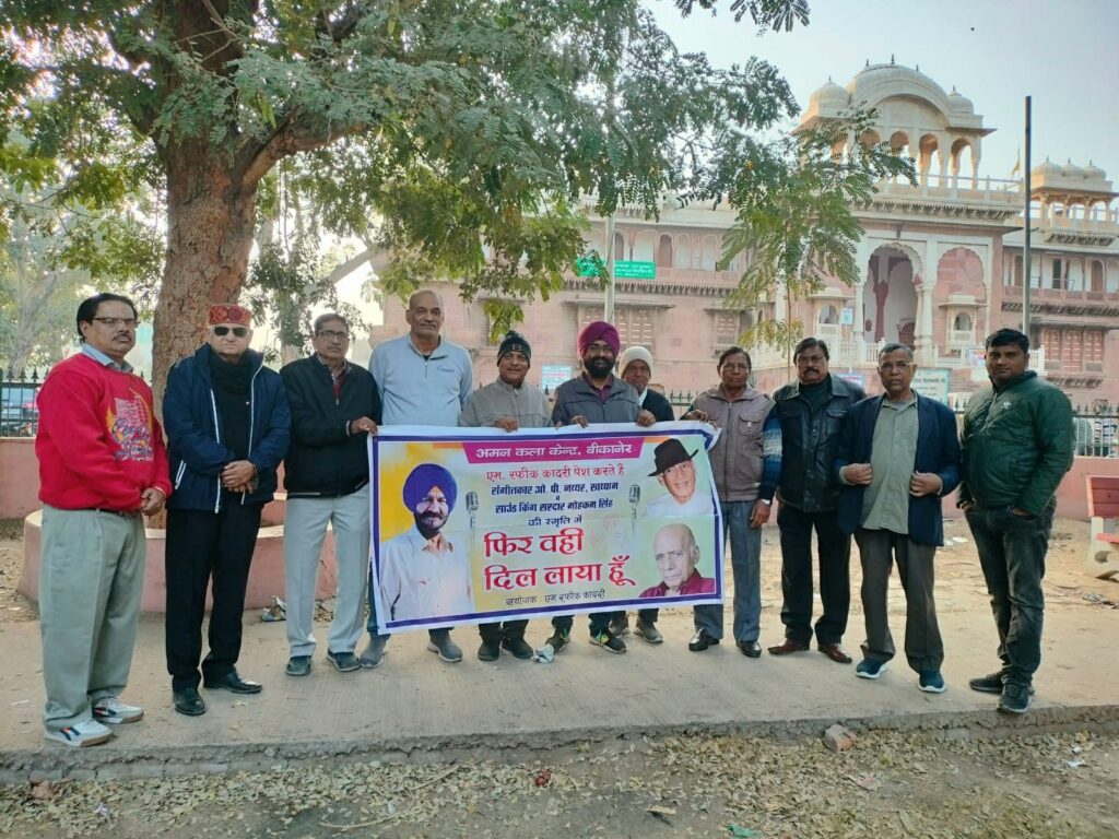 बीकानेर। अमन कला केंद्र द्वारा 19 जनवरी रविवार को प्रस्तावित टाउन हॉल में शाम 6:30 बजे फिर वही दिल लाया हूं कार्यक्रम के फ्लेक्स बैनर का विमोचन सोमवार की शाम रतन बिहारी पार्क में किया गया । संस्था के अध्यक्ष एम रफीक कादरी ने प्रेस विज्ञप्ति में बताया की इस अवसर पर समाजसेवी एन .डी. […]