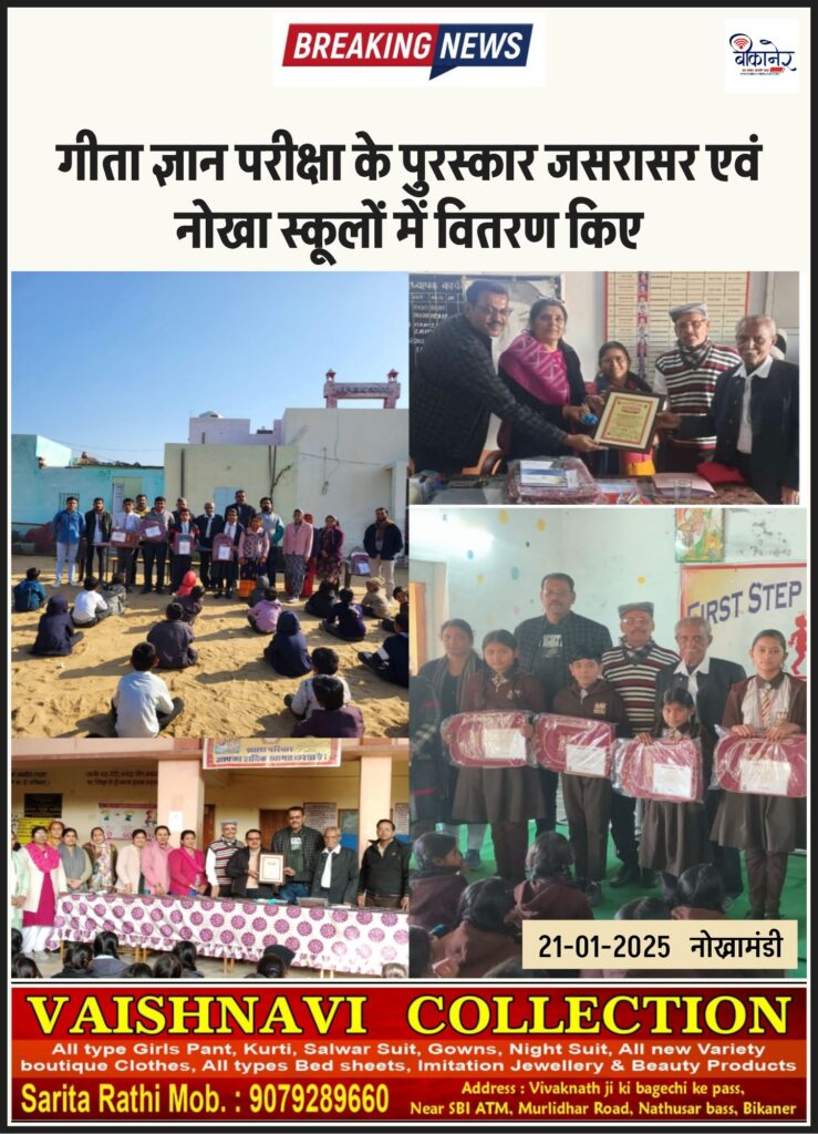 गीता ज्ञान परीक्षा के पुरस्कार जसरासर एवं नोखा स्कूलों में वितरण किए