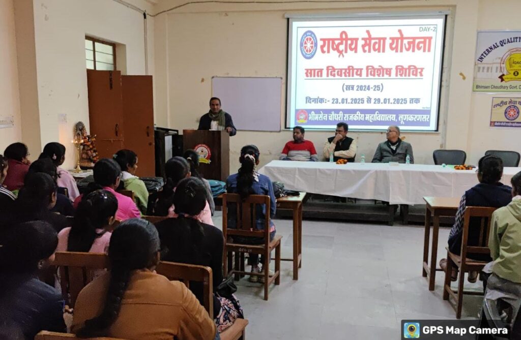 राष्ट्रीय सेवा योजना शिविर का द्वितीय दिवस प्राचार्य डॉ रजनी रमण झा की अध्यक्षता में आयोजित किया गया । इस अवसर पर भीमसेन चौधरी राजकीय महाविद्यालय में विद्यार्थियों को भारतीय जीव जंतु कल्याण बोर्ड एवं पशुपालन विभाग की विभिन्न योजनाओं की जानकारी मुख्य अतिथि डॉक्टर तनुज तंवर ने दी व पशुपालन विभाग द्वारा चलाई जा […]