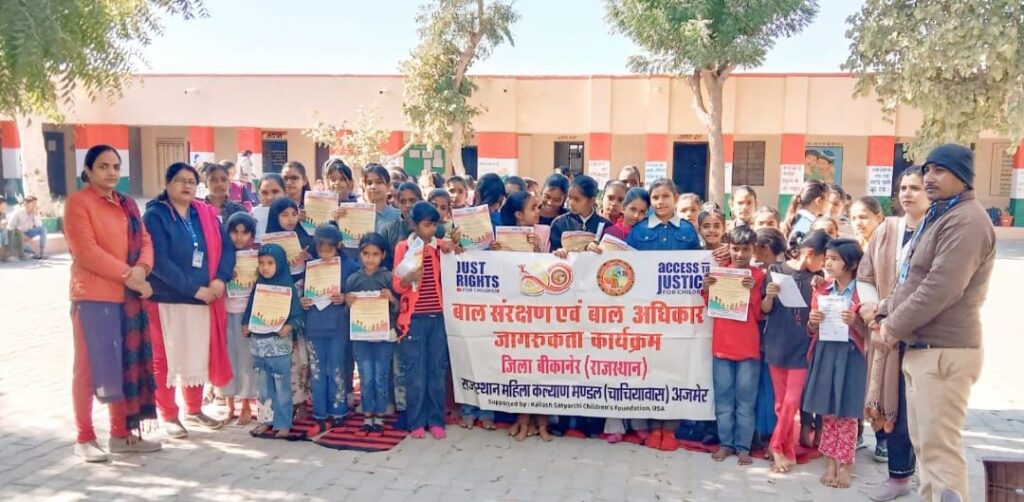 बीकानेर । राजस्थान महिला कल्याण मंडल बीकानेर की परियोजना “एक्सेस टू जस्टिस फ़ोर चिल्ड्रन फ़ेस 3 के जिला समन्वयक अमित कुमार के नेतृत्व में रिडमलसर सिपाहियान् गाँव के राजकीय उच्च माध्यमिक विद्यालय में राष्ट्रीय बालिका दिवस के उपलक्ष में कार्यक्रम आयोजित किया गया ।कार्यक्रम की अध्यक्षता प्रधानाचार्य श्रीमती साक्षी यादव द्वारा की गई व बालिकाओ […]