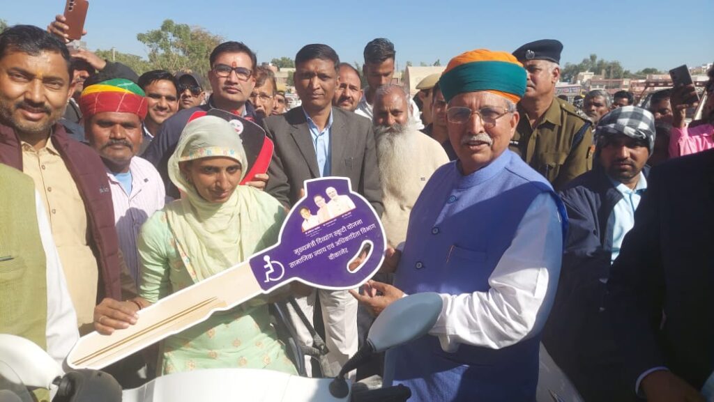 *केंद्रीय विधि एवं न्याय मंत्री ने सौंपी चाबी* बीकानेर, 28 जनवरी। मुख्यमंत्री दिव्यांग स्कूटी योजना के तहत केंद्रीय विधि एवं न्याय मंत्री श्री अर्जुनराम मेघवाल ने राजकीय पॉलीटेक्निक महाविद्यालय में मंगलवार को 29 विशेष योग्यजनों को स्कूटी की चाबी सौंपी। इस अवसर पर मेघवाल ने कहा कि स्कूटी मिलने से दिव्यांग जन विद्यार्थियों को अध्ययन […]