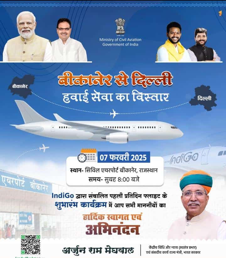 शुक्रवार को आएंगे केंद्रीय नागरिक उड्डयन राज्य मंत्री श्री मुरलीधर मोहोल बीकानेर, 6 फरवरी। केंद्रीय नागरिक उड्डयन राज्य मंत्री श्री मुरलीधर मोहोल शुक्रवार प्रातः 8:25 बजे दिल्ली एयरपोर्ट से रवाना होकर प्रातः 9:45 बजे नाल एयरपोर्ट पहुंचेंगे तथा इंडिगो फर्स्ट फ्लाइट सेरेमनी में शिरकत करने के बाद प्रातः 10:05 बजे वायुयान द्वारा दिल्ली के लिए […]