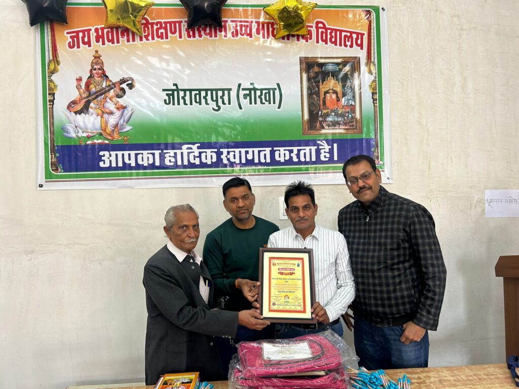 नोखा। मानव प्रबोधन प्रन्यास श्रीलालेश्वर महादेव मंदिर शिवमठ शिवबाड़ी बीकानेर द्वारा आयोजित गीता ज्ञान परीक्षा के तहत गीता स्मरण प्रतियोगिता के पुरस्कार के रूप में 242 विद्यार्थियों को 18840/- रुपए की धनराशि नोखा व रोड़ा के स्कूलों में वितरण किए गए। नोखा प्रभारी पवन चांडक ने बताया कि महात्मा गांधी राजकीय विद्यालय रोड़ा, संस्कार इंटरनेशनल […]