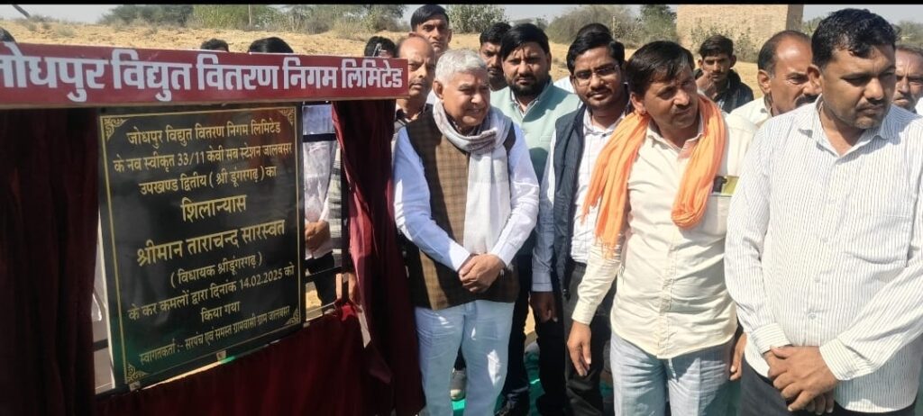 श्रीडूंगरगढ़, 14 फरवरी। श्रीडूंगरगढ़ विधायक श्री ताराचन्द सारस्वत ने शुक्रवार को विधानसभा क्षेत्र श्रीडूंगरगढ़ के ग्राम जालबसर में 33 केवी जीएसएस का शिलान्यास किया। उन्होंने कहा कि जीएसएस बनने से ग्रामवासियों लंबे समय से आ रही मांग पूरी होगी। उन्होंने कहा कि मुख्यमंत्री श्री भजनलाल शर्मा के नेतृत्व में राज्य सरकार ने गत एक वर्ष […]