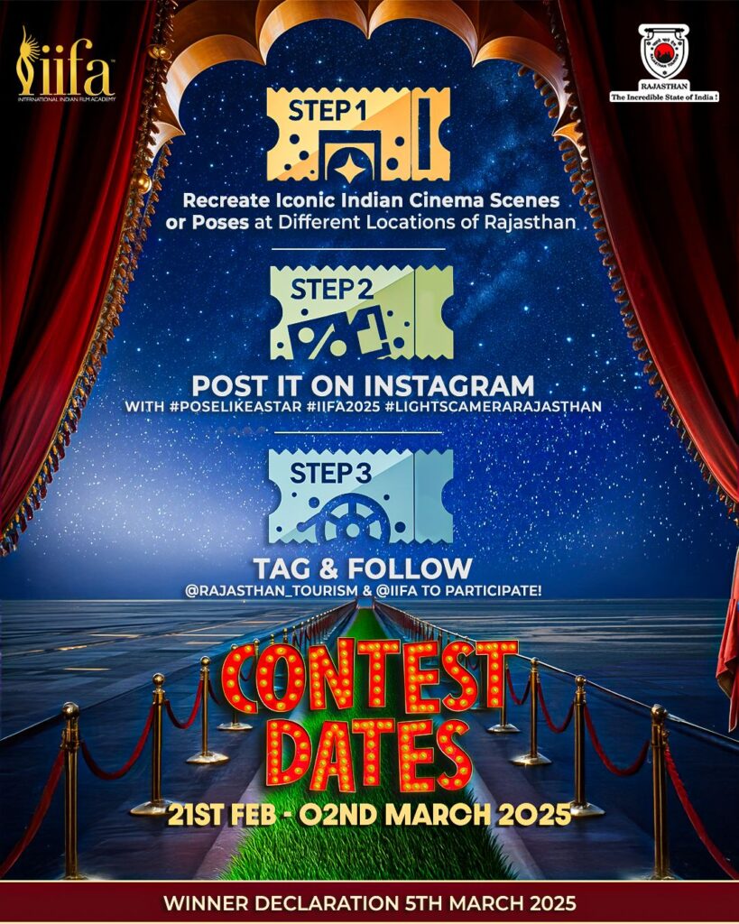 *आईफा-2025: राजस्थान में बॉलीवुड का जादू बिखेरने का सुनहरा मौका* जयपुर/बीकानेर, 24 फरवरी। राजस्थान–ऐतिहासिक धरोहरों और समृद्ध संस्कृति के लिए मशहूर राजस्थान अब भारतीय सिनेमा के उत्सव में नई चमक जोड़ने जा रहा है। आईफा-2025 के तहत राजस्थान पर्यटन विभाग ने रोमांचक सोशल मीडिया प्रतियोगिता ‘पोज लाइक ए स्टार’लॉन्च की है, जिसमें भाग लेकर सिनेमा […]