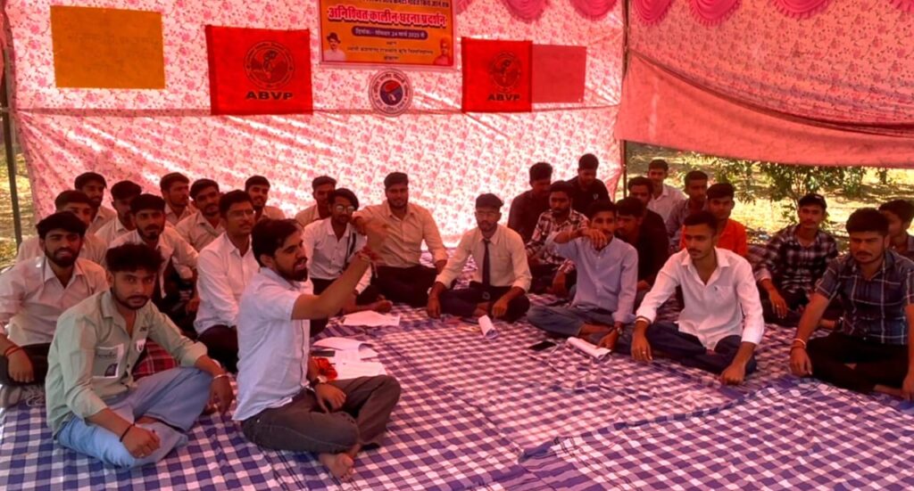 स्वामी केशवानंद राजस्थान कृषि विश्वविद्यालय में अनियमितताओं व अन्य मांगों को लेकर केशवानंद मूर्ति के अनिश्चितकालीन धरने में अखिल भारतीय विद्यार्थी परिषद की एग्रीविजन इकाई के आंदोलनरत छात्रों ने विरोध प्रदर्शन….