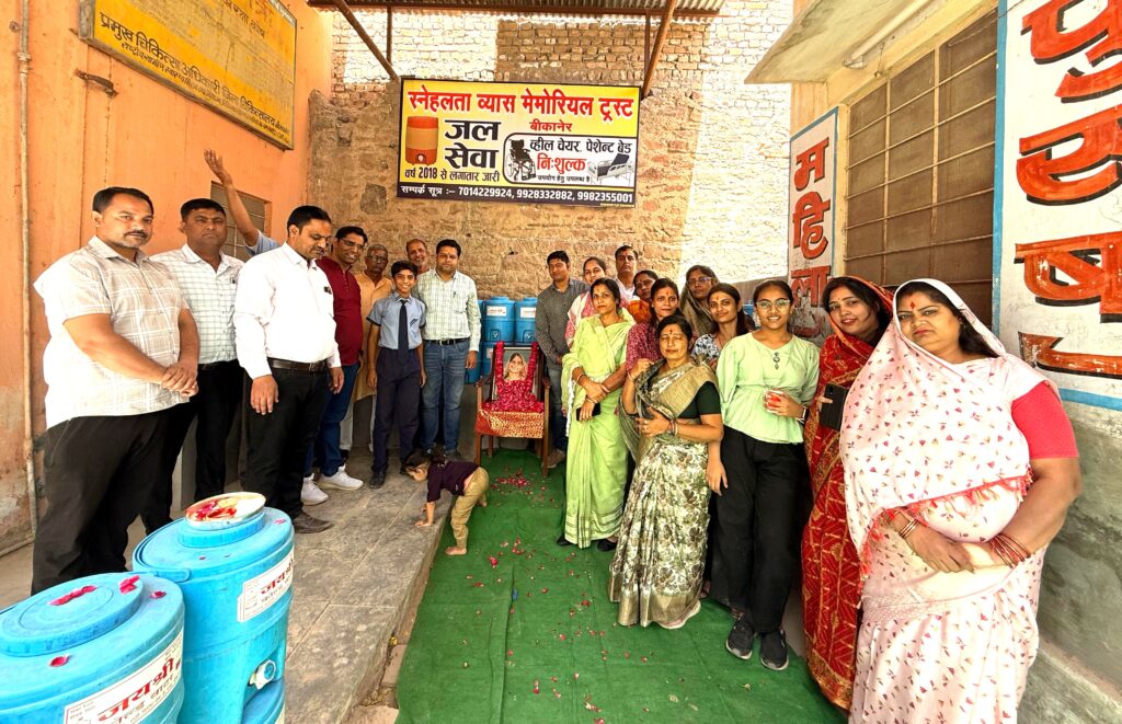 *बीकानेर, 28 मार्च।* सरदार पटेल मेडिकल कॉलेज से संबद्ध एस.डी.एम राजकीय जिला अस्पताल में श्रीमती स्नेहलता व्यास मेमोरियल ट्रस्ट की ओर से शुक्रवार को जल सेवा का उद्घाटन अधीक्षक एवं पीएमओ डॉ. सुनील हर्ष के कर कमलो द्वारा किया गया । इस दौरान संस्था से पूर्णिमा व्यास ने डॉ. हर्ष का तिलक लगाकर स्वागत किया […]