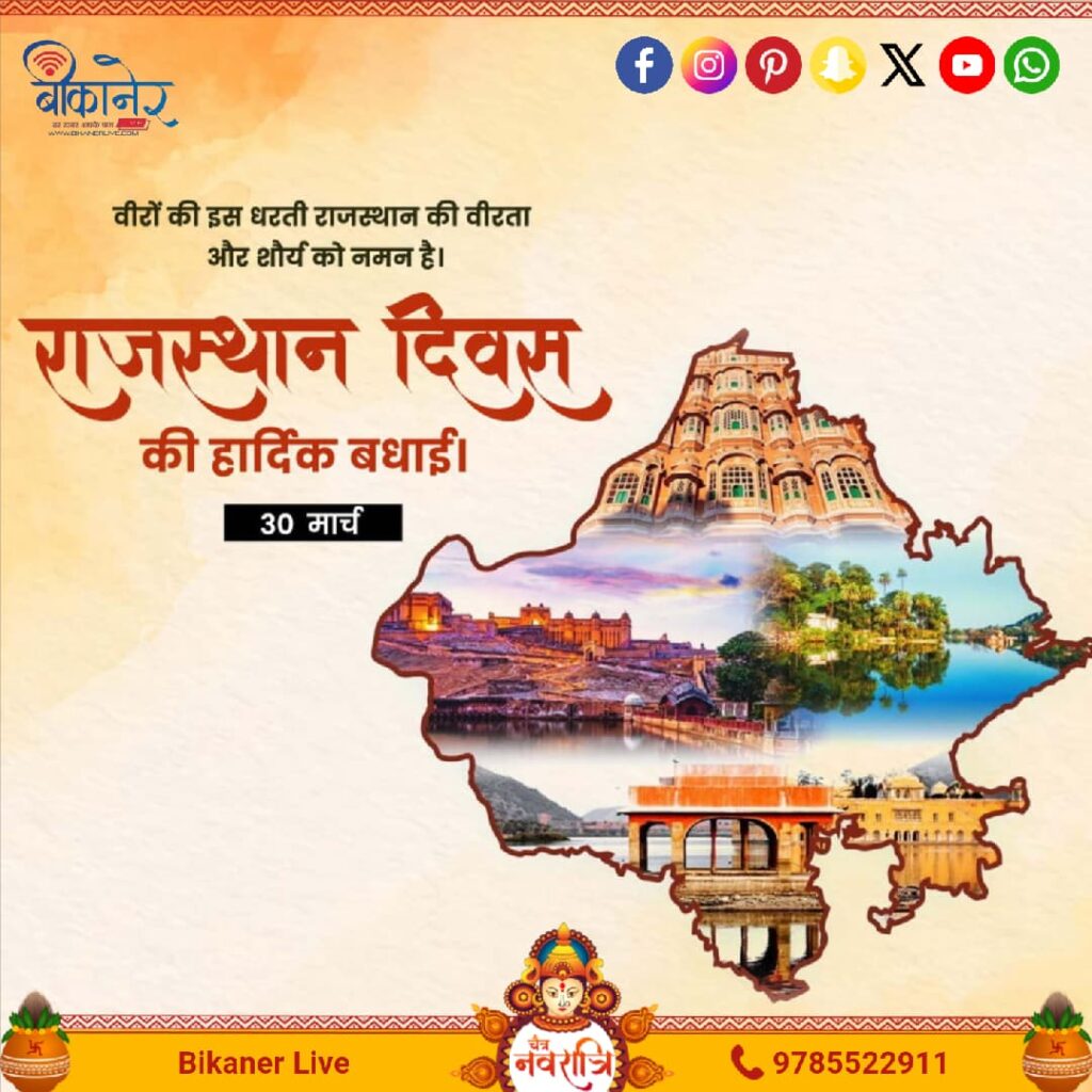 राजस्थान दिवस विशेष मुख्यमंत्री श्री भजनलाल शर्मा की पहल पर प्रदेश वासियों ने 75 वर्ष बाद पहली बार चैत्र शुक्ल प्रतिपदा को राजस्थान दिवस मनाया। यह दिन भारतीय नव वर्ष का पहला दिन होने के नाते प्रत्येक भारतीय के लिए विशेष होता है और 75 वर्षों बाद पहली बार इसी दिन राजस्थान स्थापना दिवस मनाए […]