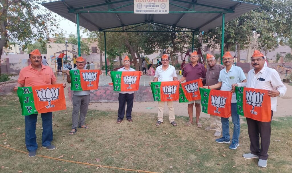 बीजेपी शिवबाड़ी मंडल द्वारा जयनारायण व्यास कॉलोनी के सेक्टर चार के वृंदावन पार्क में संध्या वेला में बीजेपी स्थापना दिवस की पूर्व संध्या पर बीजेपी के झंडे वितरण का कार्य मंडल अध्यक्ष अभय पारीक के सानिध्य में किया गया , जिसमें मंडल के पदाधिकारियों और कार्यकर्ताओं ने बढ़ चढ़कर भाग लिया । इस अवसर पर […]