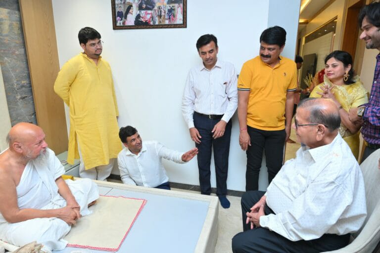 गुरुदेव खारा से विहार करके उदासर में स्वधर्मी भाइयो के लिए बन रहे अनेकांत विहार का अवलोकन किया