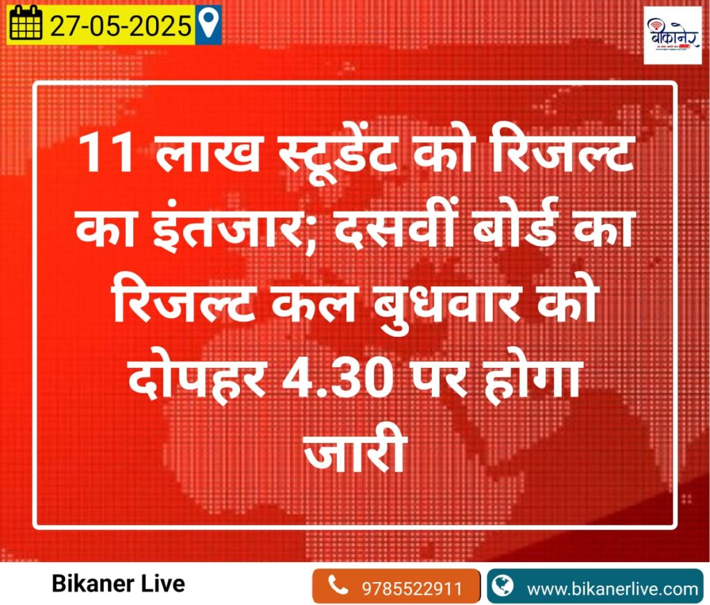 दसवीं बोर्ड का रिजल्ट कल बुधवार को 11 लाख स्टूडेंट को है रिजल्ट का इंतजार…