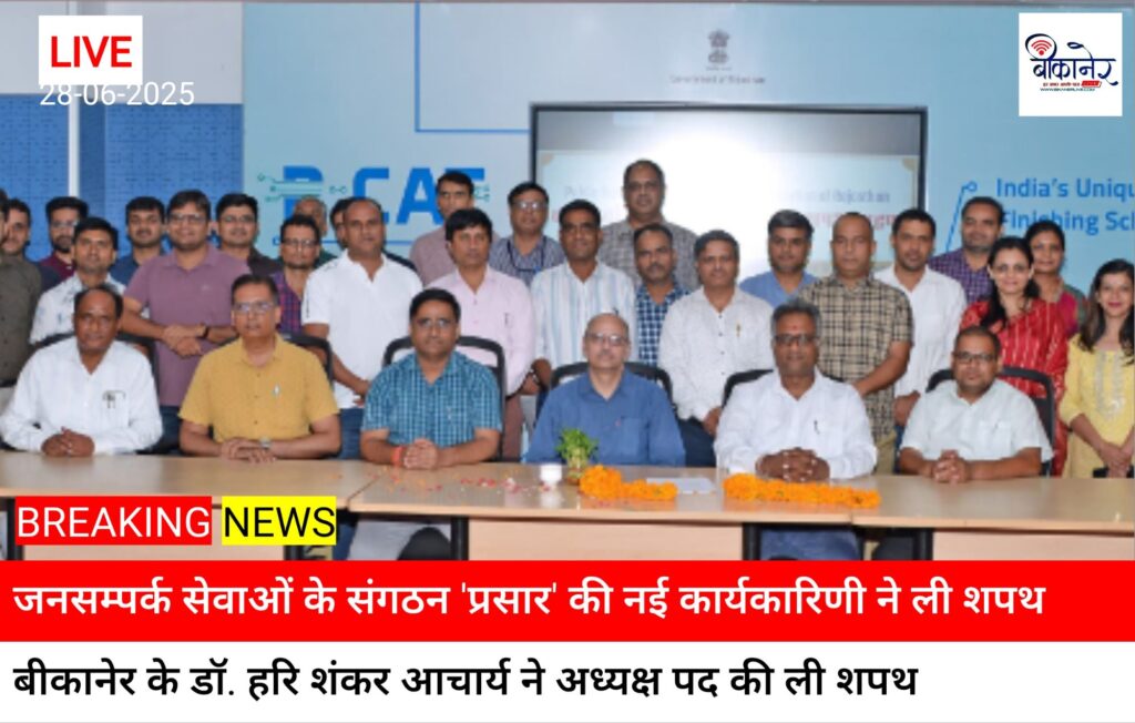 विभाग के केडर रिव्यू करने और जनसंपर्क दिवस आयोजित करने की रखी मांगबीकानेर के डॉ. हरि शंकर आचार्य ने अध्यक्ष पद की ली शपथ जयपुर, 28 जून। जनसंपर्क अधिकारियों के संगठन पब्लिक रिलेशंस एंड एलाइड सर्विसेज एसोसिएशन ऑफ राजस्थान (प्रसार) की नई कार्यकारिणी का शपथ ग्रहण समारोह शनिवार को जयपुर के सूचना केंद्र में आयोजित […]