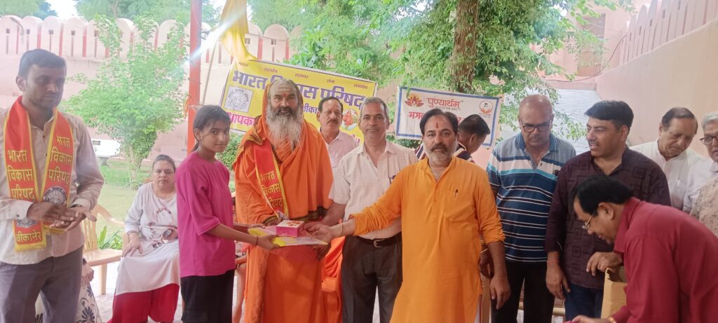 दिनांक 24 जुलाई 2025, बीकानेर।भारत विकास परिषद नगर इकाई बीकानेर ने परिषद की *स्थापना दिवस* एवं *सेवा प्रकल्प* के तहत शिव बाड़ी बीकानेर मे *पुण्यार्थम संस्था* के 4 संस्कार विधालय एवं *सेवा भारती संस्था* के 1 विधालय के 125 छात्र एवं छात्राओं को स्टेशनरी अंग्रेजी, हिन्दी एवं गणित की कॉपियां वितरित कर स्थापना दिवस मनाया […]
