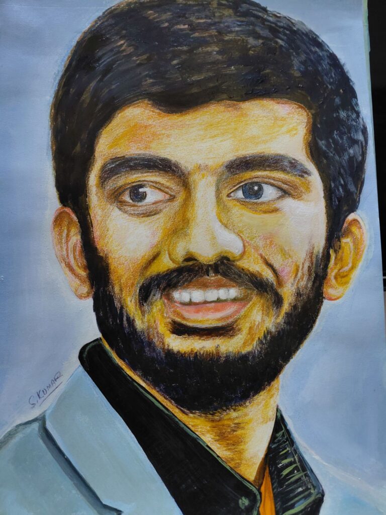 शतरंज खिलाड़ी डी. गुकेश (भारत ) की पेंटिंग