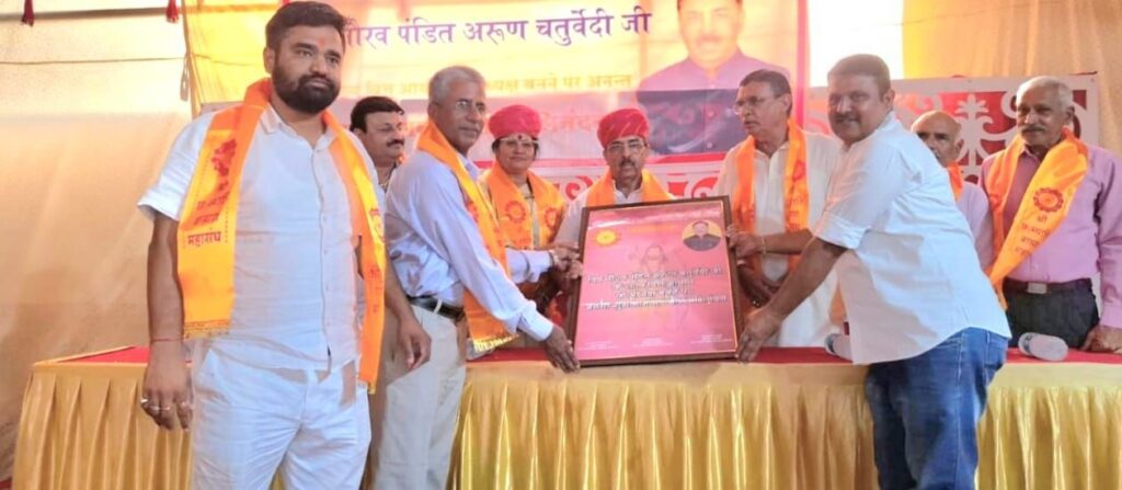 अरुण चतुर्वेदी के राज्य वित्त आयोग अध्यक्ष बनने पर श्री छः न्याति ब्राह्मण महासंघ द्वारा सम्मान समारोह