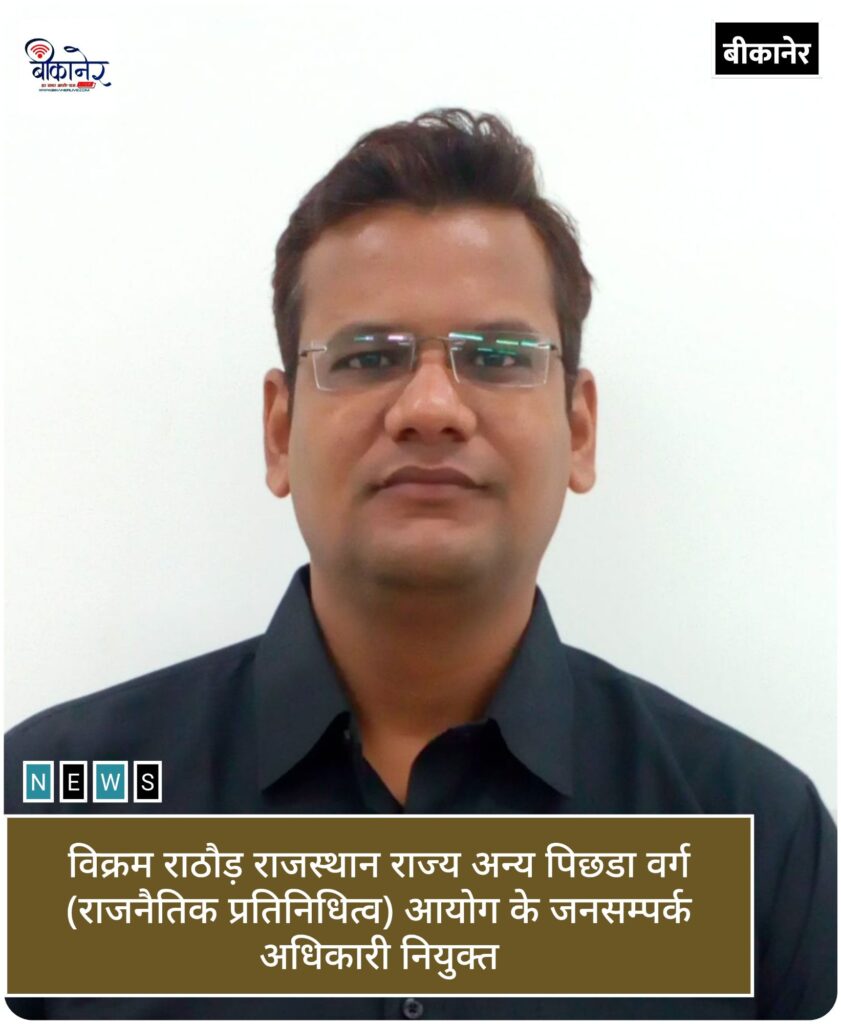 विक्रम राठौड़ राजस्थान राज्य अन्य पिछडा वर्ग (राजनैतिक प्रतिनिधित्व) आयोग के जनसम्पर्क अधिकारी नियुक्त