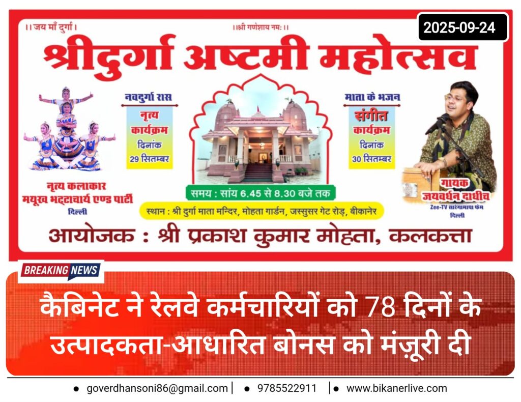 कैबिनेट ने रेलवे कर्मचारियों को 78 दिनों के उत्पादकता-आधारित बोनस को मंज़ूरी दी