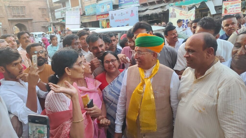 केंद्रीय क़ानून मंत्री श्री अर्जुन राम मेघवाल और खाद्य मंत्री श्री सुमित गोदारा लूणकरणसर बाजार में