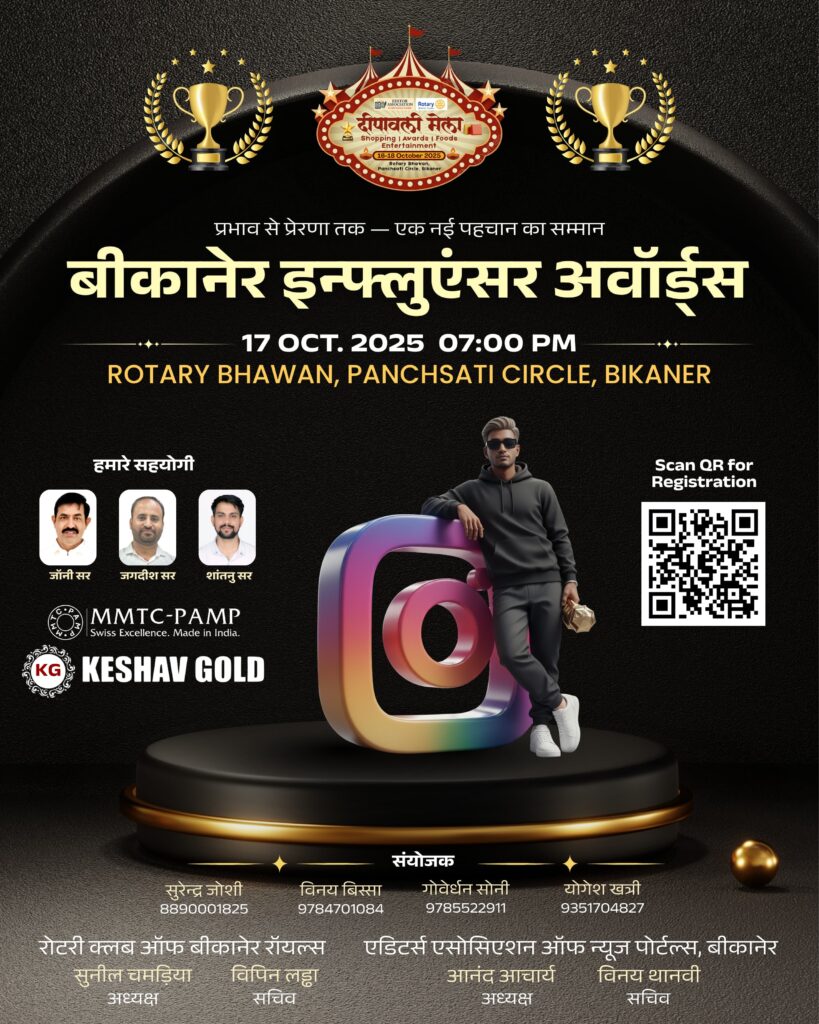 शहर के रचनात्मक युवाओं को मिलेगा डिजिटल मंच, दीपोत्सव में होगी इन्फ्लुएंसर अवॉर्ड नाइट रोटरी रॉयल्स और एडिटर एसोसिएशन की संयुक्त पहल