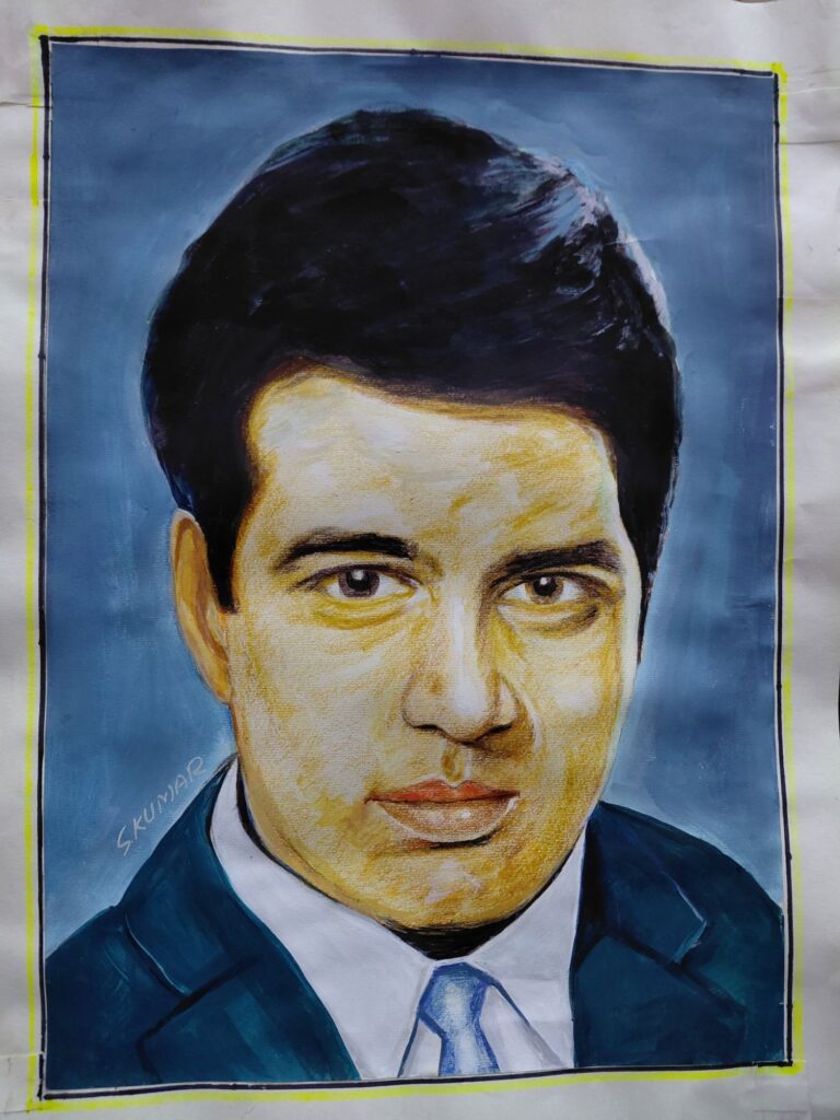बीकानेर के आर्टिस्ट एस कुमार हटीला ने धर्मेंद्र की पेंटिंग बनाई