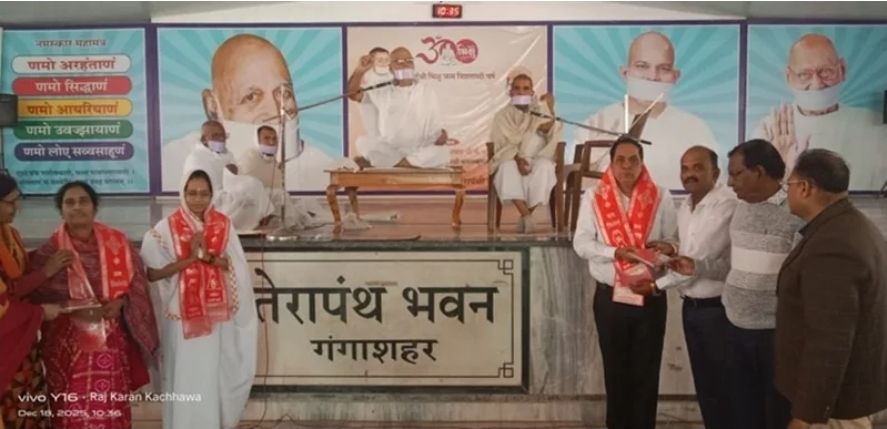 दीक्षार्थी खुशी सुराणा का भव्य अभिनंदन; मुनि कमल कुमार बोले- “सतत गुरु दृष्टि का पालन करें” गंगाशहर, 18 दिसम्बर । स्थानीय तेरापंथ भवन में उग्रविहारी तपोमूर्ति मुनि श्री कमल कुमार जी के पावन सान्निध्य में दीक्षार्थी बहन खुशी सुराणा ‘घणा’ का भव्य अभिनंदन समारोह आयोजित किया गया। इस गौरवपूर्ण अवसर पर मुनिश्री ने दीक्षार्थी के […]
