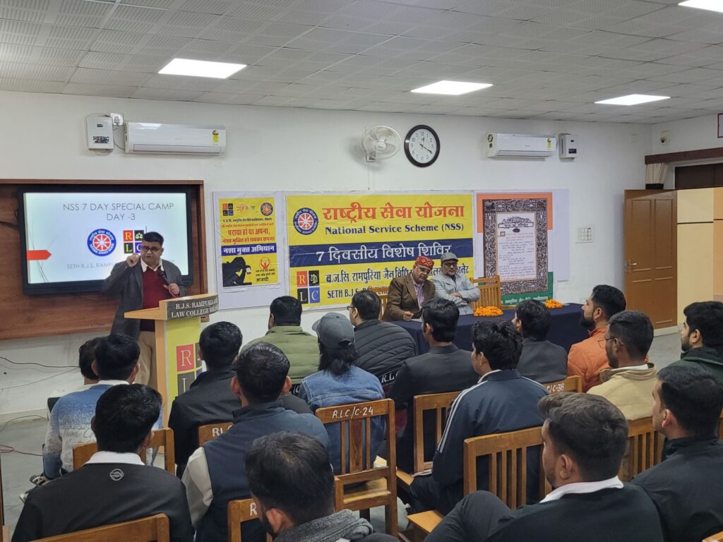 एनएसएस के स्वयंसेवक बने सरकार के ‘युवा एम्बेसडर’, लक्षित वर्ग तक पहुंचाएं योजनाओं की जानकारी रामपुरिया जैन विधि महाविद्यालय में आयोजित हुआ कार्यक्रम