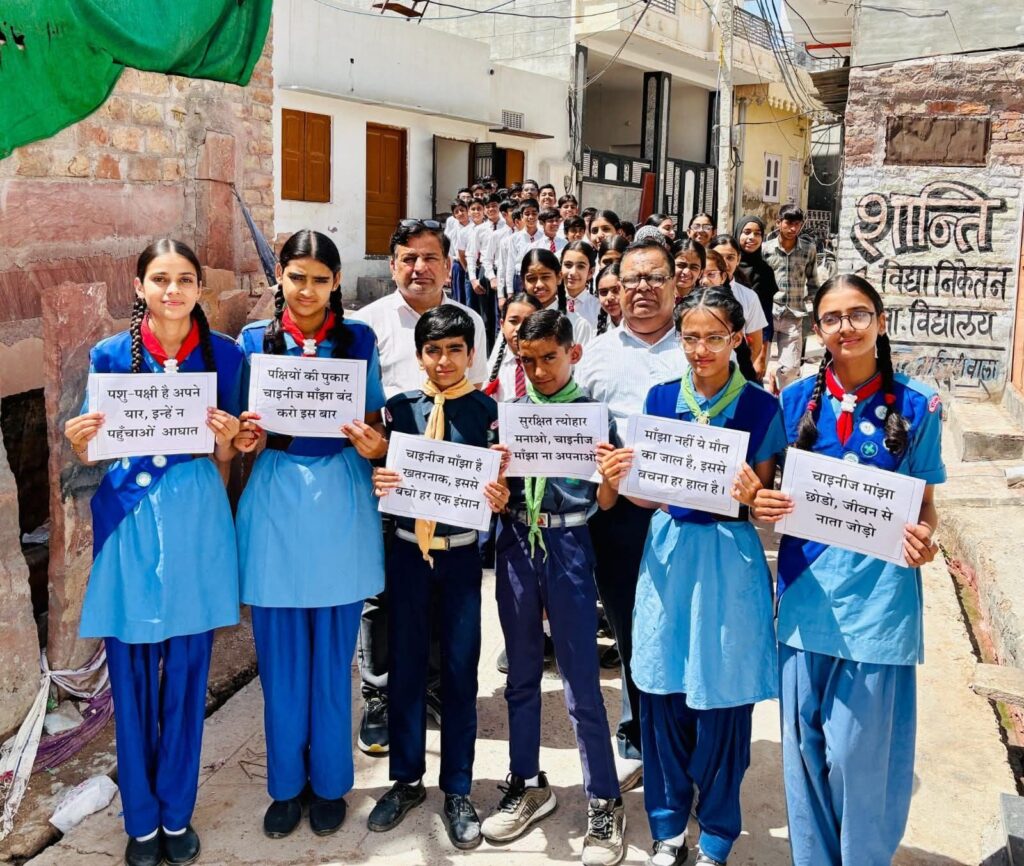 करुणा क्लब टीम और स्काउट गाइड द्वारा चाइनीज मांझे के बहिष्कार हेतु जागरूकता रैली