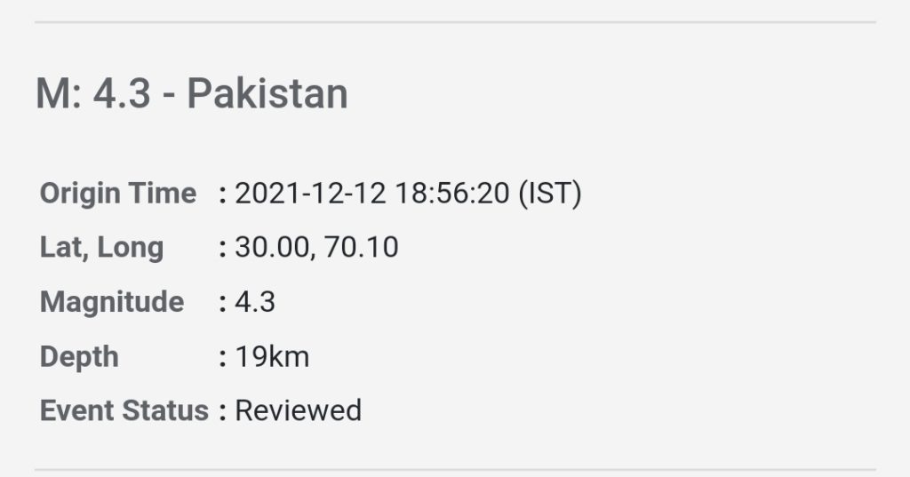 बीकानेर में आज शाम कोई भूकंप नही आया है जिसकी पुष्टि दिल्ली स्थित नेशनल सेंटर फॉर सिस्मोलॉजी ने की है । जागरूक जनता से हुई बातचीत में विभाग ने बताया कि यह भूकंप बीकानेर में नही बल्कि पाकिस्तान में आज शाम 6:56 मिनट पर आया जिसकी रिएक्टर स्केल 4.3 की त्रीवता मापी गई । भूकंप का यह केंद्र बीकानेर से लगभग 381 किमी दूरी पर था । विभाग ने कहा ऐसे में अमूमन 300 से 400 किमी के एरिया में मामूली वाइब्रेट होता है । विभाग के अनुसार इसे वैज्ञानिक दृष्टिकोण से भूकंप की श्रेणी से नही गिना जाता है । बता दे, बीकानेर में भूकंप आने की खबरें आज शाम तेजी से प्रसारित हो रही थी, ऐसे में जागरूक जनता ने दिल्ली स्थित नेशनल सेंटर फॉर सिस्मोलॉजी विभाग से इस सम्बंध में जानकारी चाही तो विभाग ने बीकानेर में भूकंप नही आने की पुष्टि की।