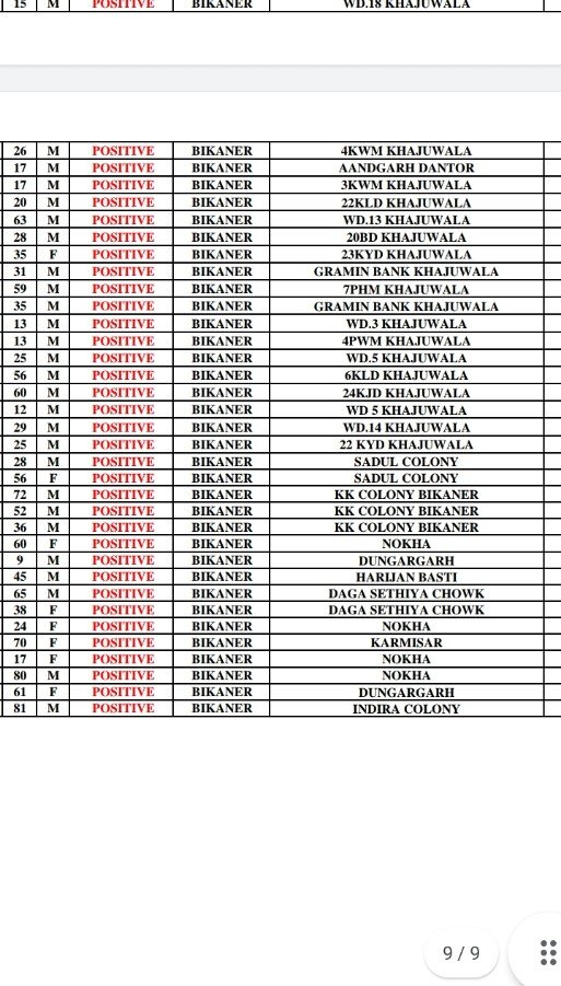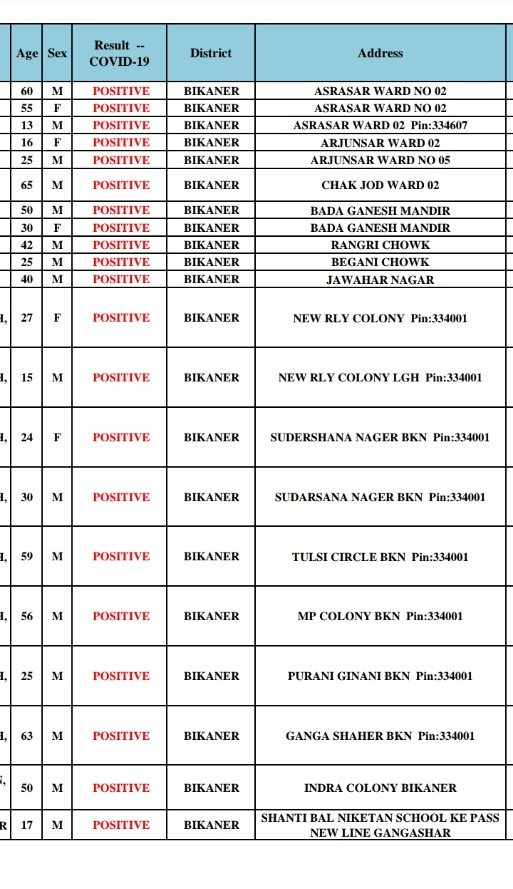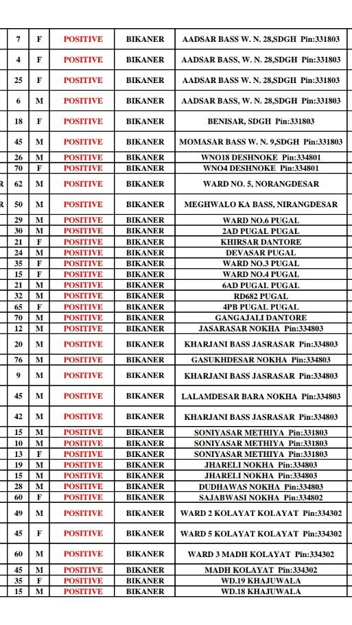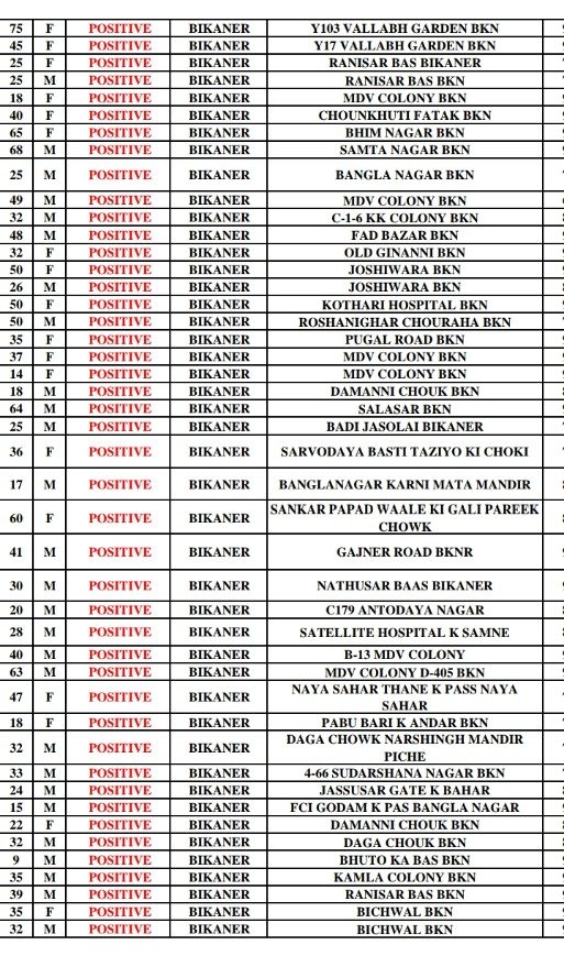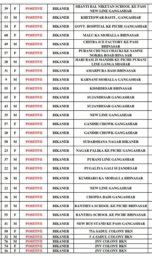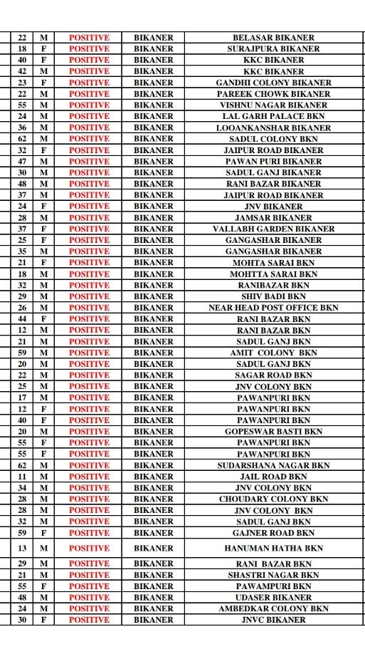 16 जनवरी रविवार को सुबह की लिस्ट में 370 पॉजिटिव इन जगह से
